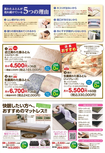 ③軽量生地&片寄り防止キルト羽毛ふとん