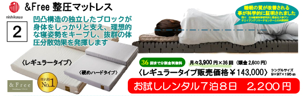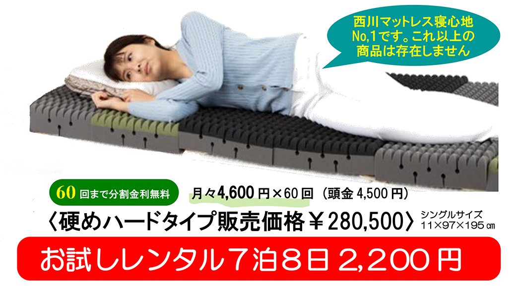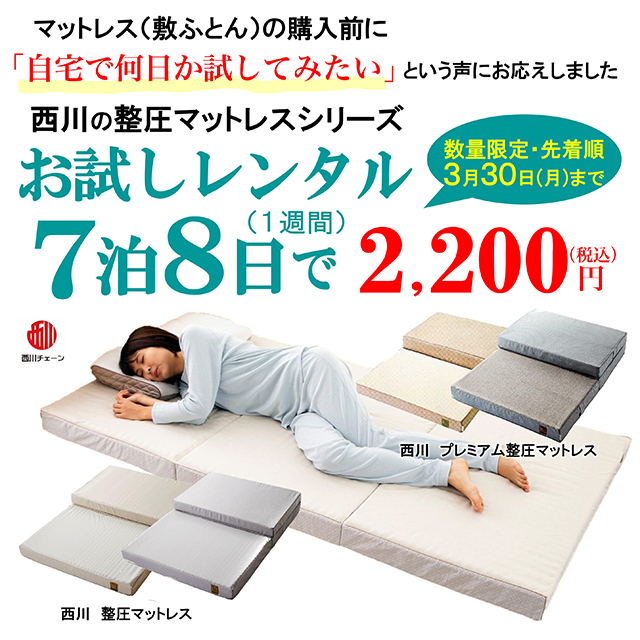 人気のマットレスシリーズお試しレンタル7泊8日で2,200円