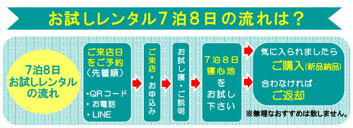 お持ち帰り頂き、7泊8日寝心地をお確かめください