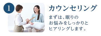 測定 → まくら作成 → ご体感 → 微調整 → 2週間レンタル → ご返却(ご購入の場合はお支払い)