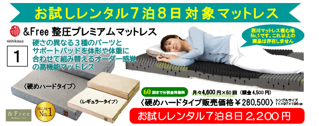 人気のマットレスシリーズお試しレンタル7泊8日で2,200円
