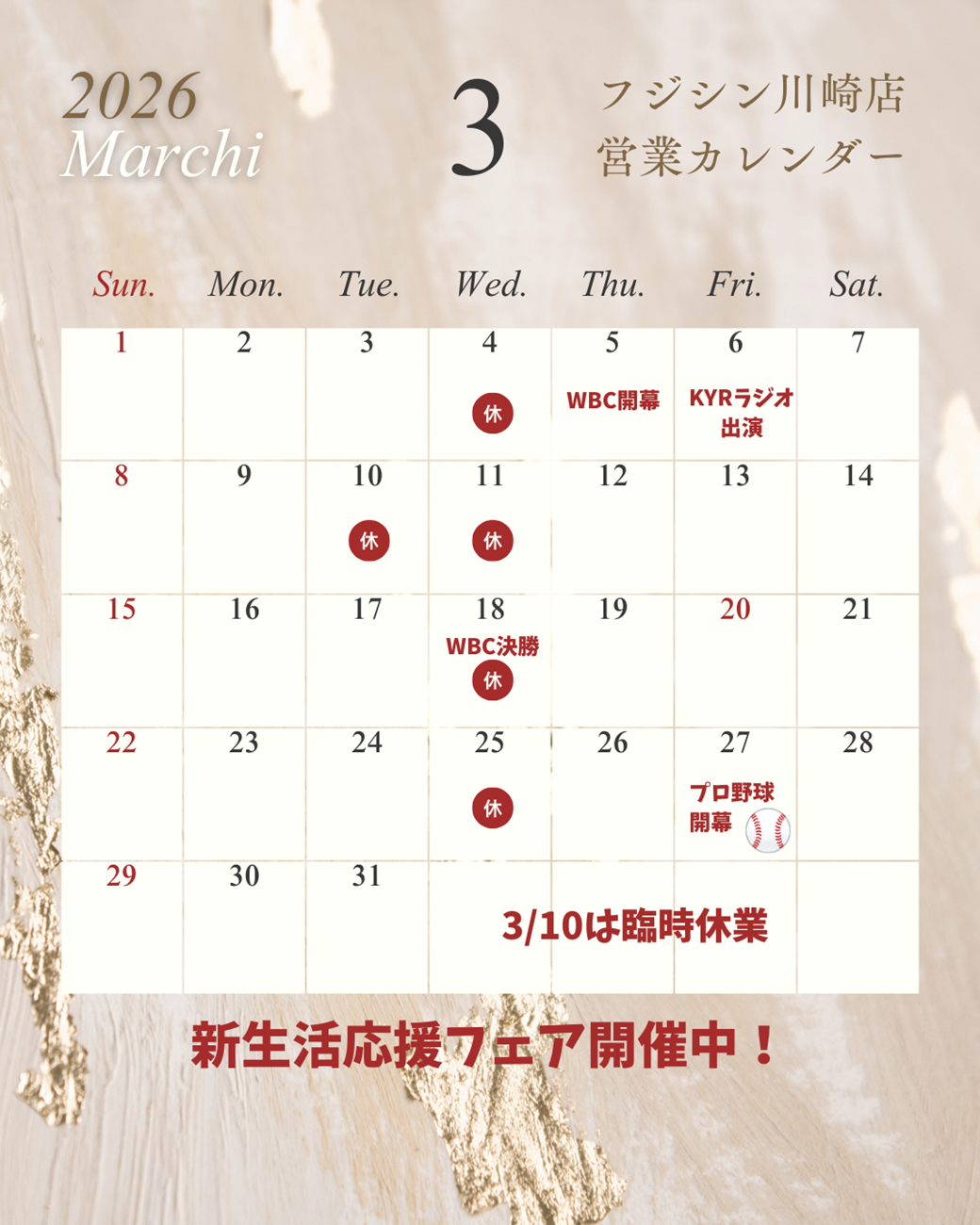 【川崎店】3月の営業カレンダー