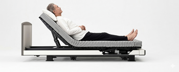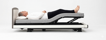 パラマウントベッド独自の機能です。まず膝が上がる。次に背中が。そのため、おしり部分がホールドされ、身体のズレを抑えながら、快適に起き上がらせてくれます。胸やおなかへの圧迫感を軽減することができる、身体にやさしい機能です。